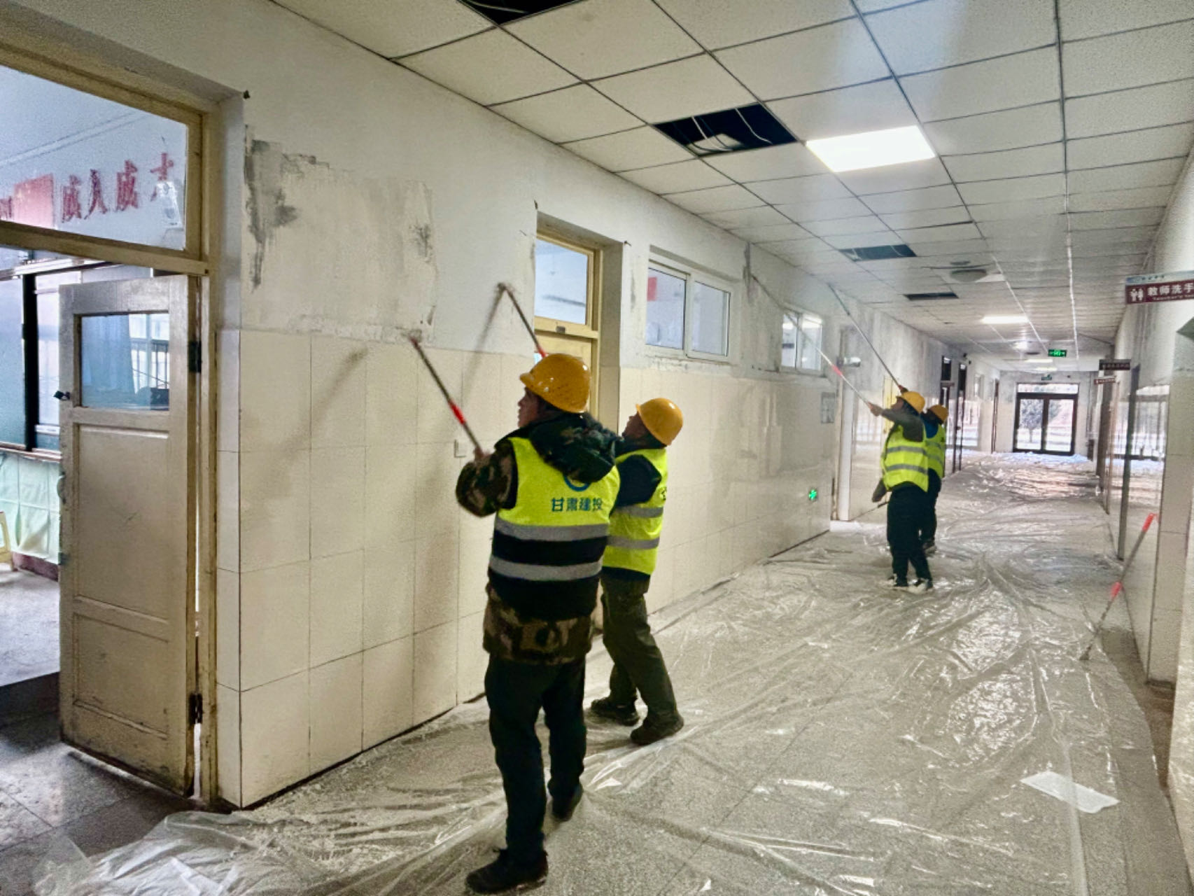 積石山地震發生后,部分校舍受損,甘肅建投交科公司緊抓寒假“窗口期”,主動扛起社會責任,加快積石中學15000平米校舍維修任務進度,確保2月25日春季開學前教學樓恢復使用。