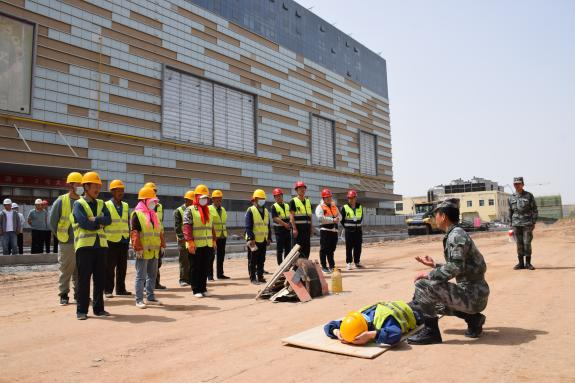 甘肅軍創(chuàng)培訓(xùn)中心培訓(xùn)人員在項(xiàng)目現(xiàn)場(chǎng)開(kāi)展消防知識(shí)宣傳,向項(xiàng)目一線人員普及安全消防知識(shí),從火災(zāi)隱患自查、初起火災(zāi)自救、組織人員疏散、消防安全“四個(gè)能力”方面詳細(xì)講解了如何防范、預(yù)防火災(zāi)事故,詳細(xì)介紹消防防護(hù)裝備的作用,現(xiàn)場(chǎng)演示消防器材、防毒面罩等消防救援器材的使用方法。