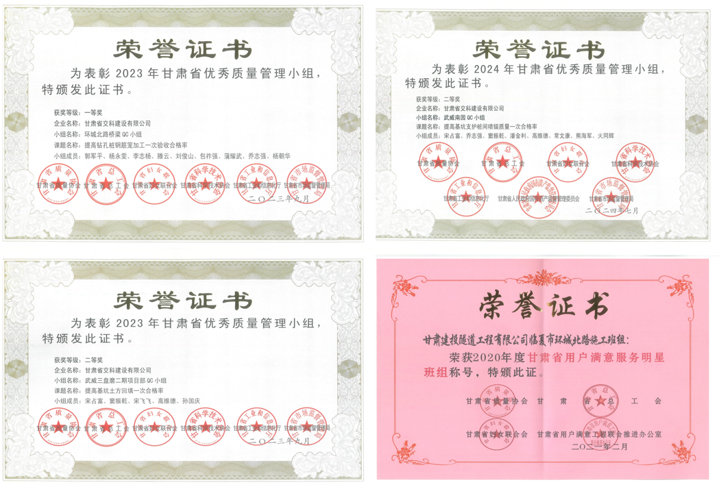 《質量強國建設綱要》指出:“要推進工程質量管理標準化,嚴格進場設備和材料、施工工序、項目驗收的全過程質量管控。”在日常管理過程中,技術質量科深入項目一線開展質量培訓,通過專項檢查、現場交底、質量驗收等,對各環節進行“質量體檢”,針對隱蔽工程、關鍵工序等重點做好服務指導,今年來,累計開展專項檢查13次,及時整改現場質量隱患問題,現場質量管控水平逐步提高。通過不斷地經驗積累與研究,交科公司四公司以項目為依托,先后開展了“提高鉆孔樁鋼筋籠加工一次驗收合格率”“提高基坑土方回填一次合格率”“提高基坑支護樁間噴錨質量一次合格率”等課題研究,其中臨夏市環城北路橋梁QC小組課題榮獲“甘肅省優秀質量管理小組一等獎”,武威涼州區三盤磨棚戶區改造安置房建設項目和和平鎮南園東片區棚戶區改造安置房建設項目QC小組研究課題榮獲“甘肅省優秀質量管理小組二等獎”。