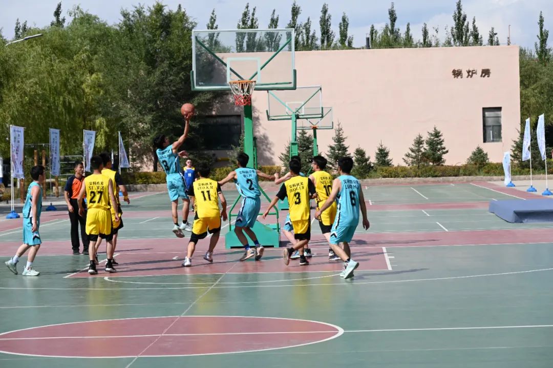 上午9:30,開幕式一結束,比賽正式打響,隨著哨聲響起,籃球升空,兩隊隊員鉚足拼勁,肌肉緊繃,眼神專注,球一下落,各個隊員使出渾身解數,爭先恐后,你爭我搶,奔跑、投籃、防守、扣球,所有動作一氣呵成,籃球場上,隊員們各展風采,盡情揮灑汗水,奮力拼搏。