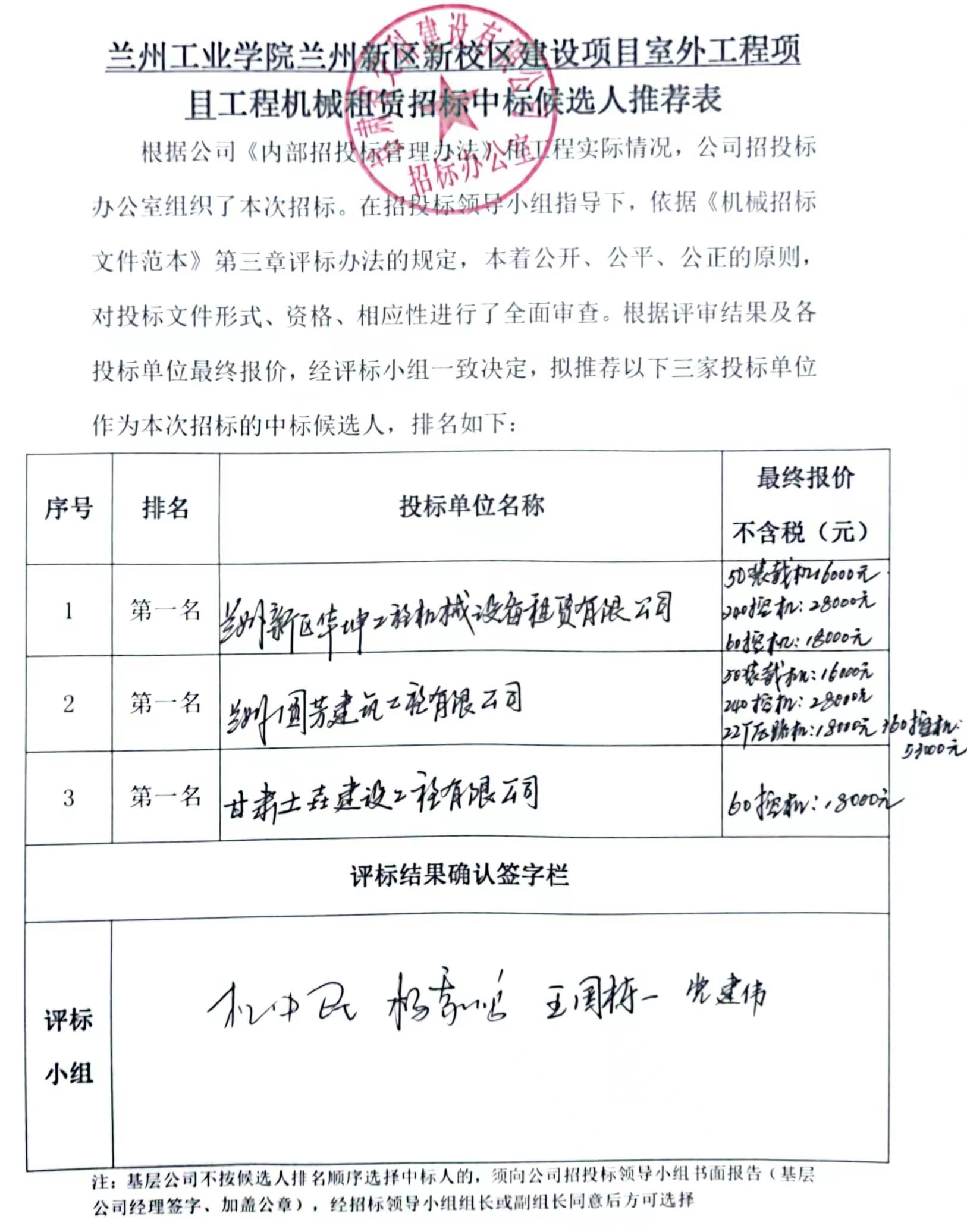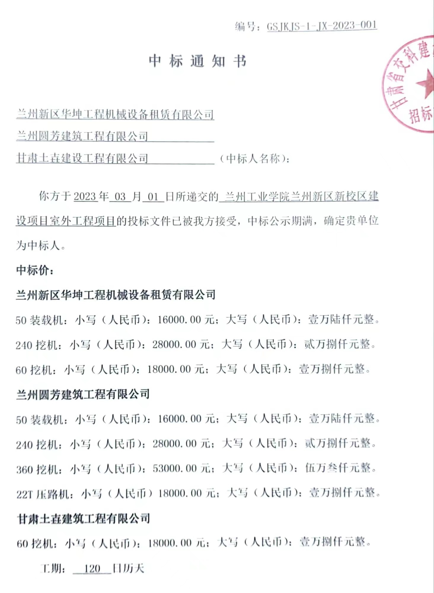 蘭州工業(yè)學(xué)院蘭州新區(qū)新校區(qū)建設(shè)項(xiàng)目室外工程項(xiàng)目中標(biāo)候選人及中標(biāo)通知書