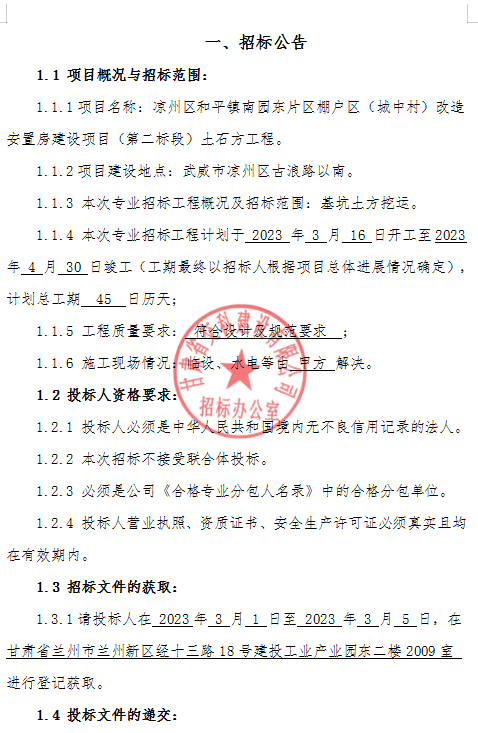 涼州區(qū)和平鎮(zhèn)南園東片區(qū)棚戶區(qū)(城中村)改造安置房建設(shè)項目(第二標(biāo)段)土石方工程招標(biāo)公告