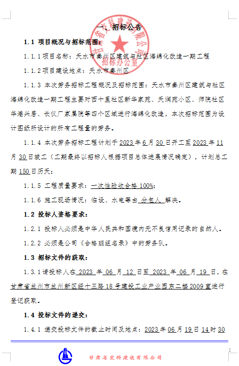 天水市秦州區(qū)建筑與社區(qū)海綿化改造一期工程-勞務招標公告
