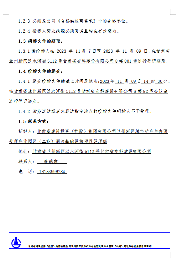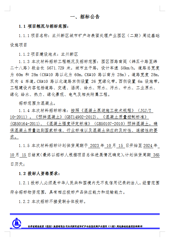 蘭州新區(qū)城市礦產(chǎn)與表面處理產(chǎn)業(yè)園區(qū)(二期)周邊基礎設施項目-混凝土招標公告