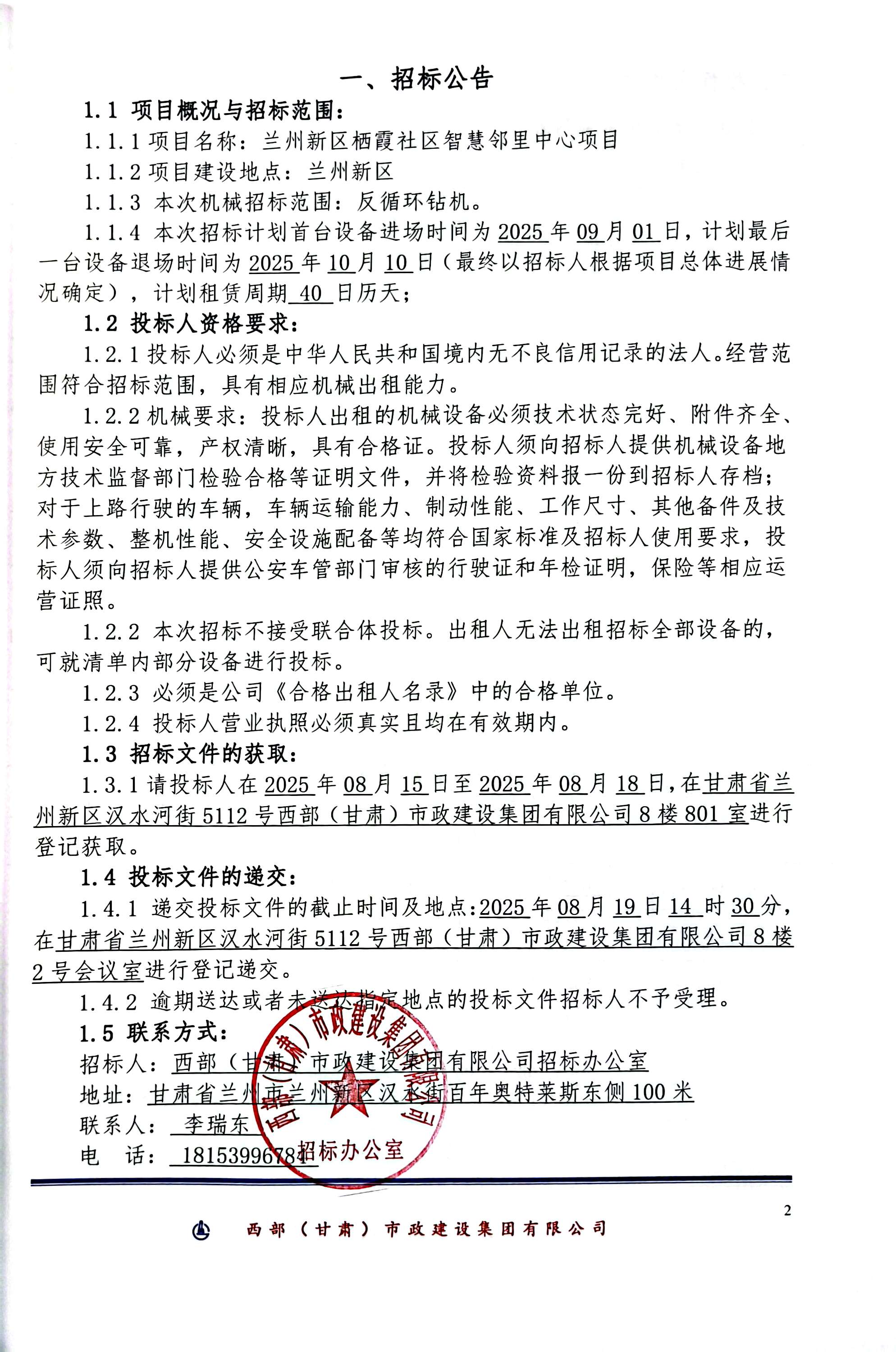 蘭州新區(qū)棲霞社區(qū)智慧鄰里中心項(xiàng)目-機(jī)械租賃-招標(biāo)公告