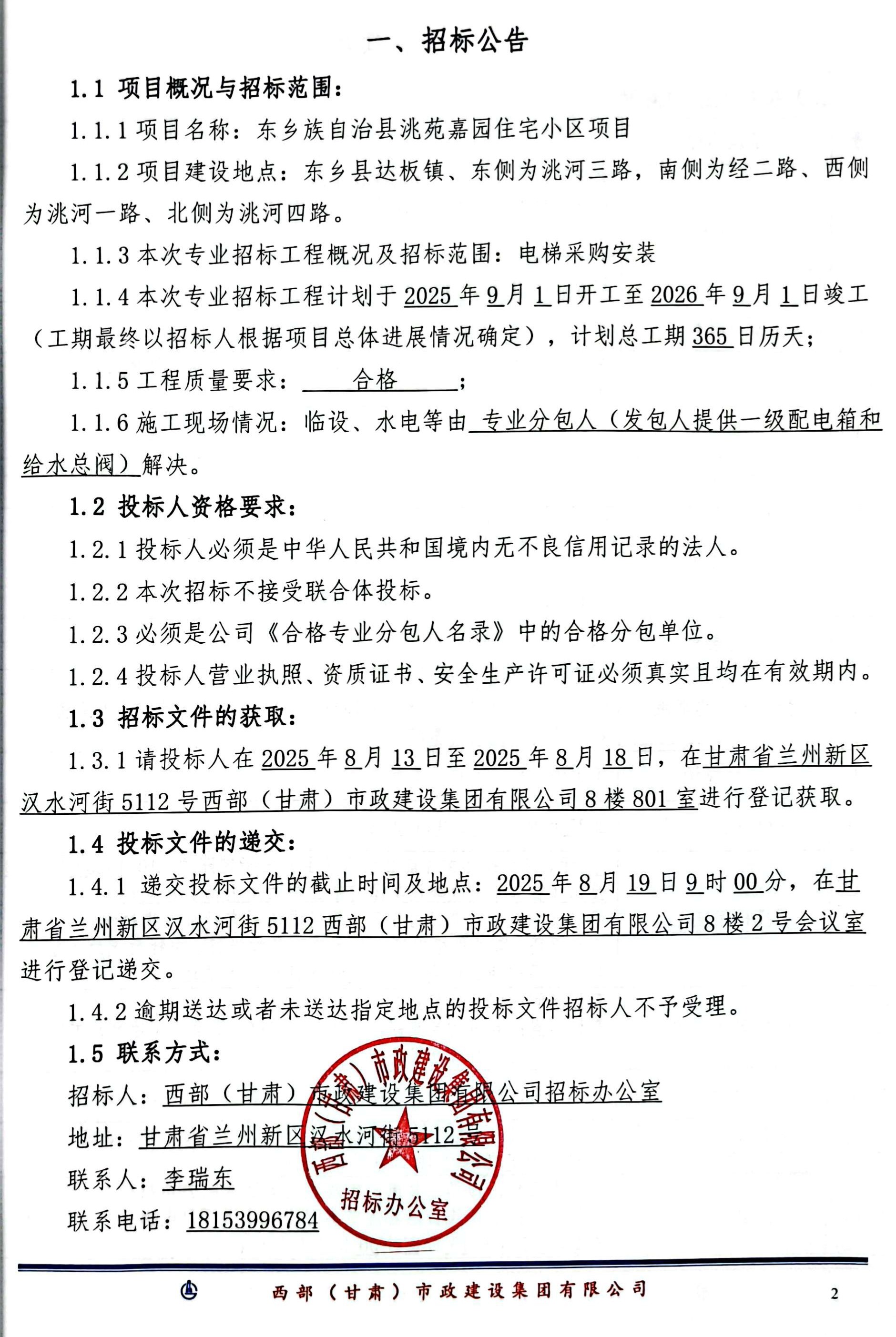 東鄉(xiāng)族自治縣洮苑嘉園住宅小區(qū)項(xiàng)目-電梯采購(gòu)安裝-招標(biāo)公告