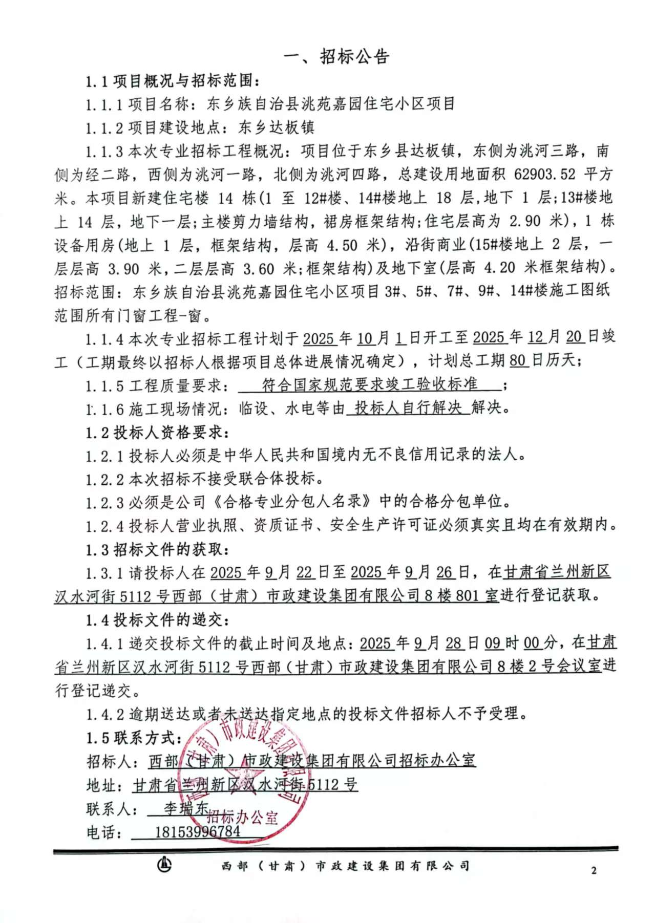 東鄉族自治縣洮苑嘉園住宅小區項目-窗-招標公告