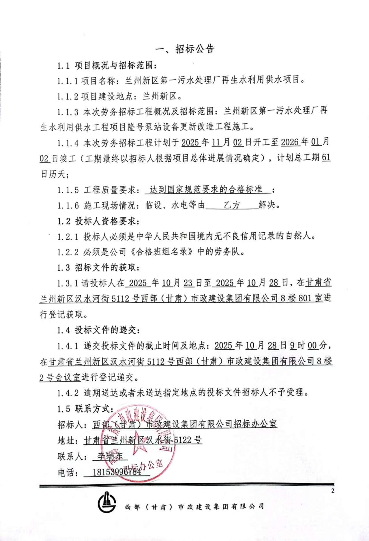 蘭州新區(qū)第一污水處理廠再生水利用供水項(xiàng)目-招標(biāo)公告