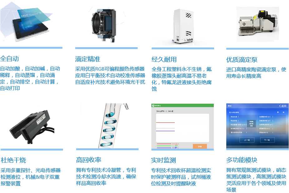 NKY6160凱氏定氮儀采用智能化程序設(shè)計(jì),不但具有全程自動加酸、加減、稀釋和自動清洗功能,同時(shí)實(shí)現(xiàn)樣品在堿性條件下將銨鹽轉(zhuǎn)化為氨的自動蒸餾;而且在程序設(shè)定條件下通過高精度微量計(jì)量泵自動完成標(biāo)準(zhǔn)鹽酸滴定,通過RGB可編程光學(xué)傳感技術(shù)自動判定到達(dá)滴定終點(diǎn),從而計(jì)算出樣品中氮的含量。該產(chǎn)品已成為食品企業(yè)、農(nóng)林漁業(yè)、高等院校、科研機(jī)構(gòu)、質(zhì)量機(jī)構(gòu)等部門的重要理化分析儀器。