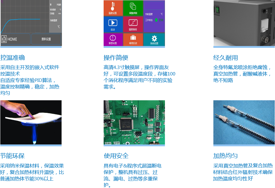 XTG5201紅外消化爐采用復(fù)合電熱絲真空加熱技術(shù),升溫效率